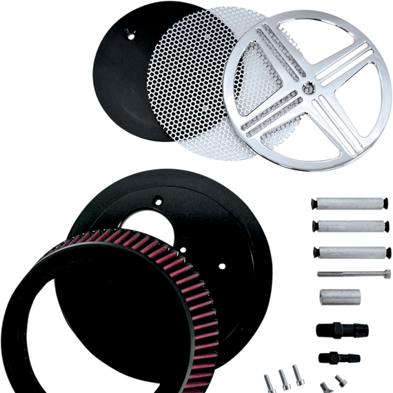 Caracteristicas: Dyno-designed "AirLoad" manifolds reduce turbulence and increase air intake velocity, boosting horsepower and torque Custom-made AirRaid cleanable, reusable air filter provides increased airflow volume to the engine Kit replaces the stock air cleaner assembly, maintaining balance and symmetry Complete hardware kit and instructions included Machined from 6061 T-6 billet aluminum Made in the U.S.A.