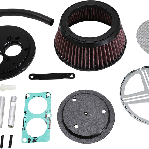 Caracteristicas: Dyno-designed "AirLoad" manifolds reduce turbulence and increase air intake velocity, boosting horsepower and torque Custom-made AirRaid cleanable, reusable air filter provides increased airflow volume to the engine Kit replaces the stock air cleaner assembly, maintaining balance and symmetry Complete hardware kit and instructions included Machined from 6061 T-6 billet aluminum Made in the U.S.A.