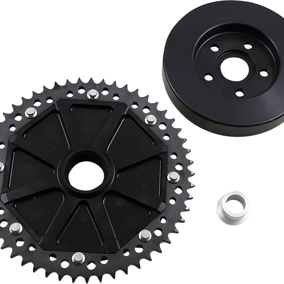 Caracteristicas: CNC-machined billet aluminum carrier and hub adapter CNC-machined sprocket made of 1026 medium- to high-carbon steel Fits stock or aftermarket wheel Made in the U.S.A.