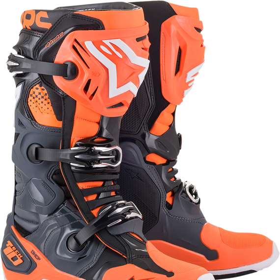 • The design also reduces the Tech 10’s profile and physical size. It is more streamlined with newer, lighter, more durable composite materials and a more integrated approach to the construction of the components which dynamically enhance the chassis of the boot and utilize more advanced bonding processes.