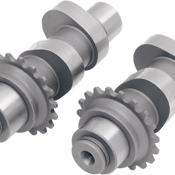 Caracteristicas: Allow you to upgrade your 99-06 Twin Cam (except 06 Dyna Glide) to the newer roller-style cam chains and replaces the spring tension cam chain adjusters with the later-style hydraulic adjusters for longer life Cam grinds listed are designed to be used with stock lifters; they require the installation of a 07-17 cam plate, oil pump, cam sprockets and chains, and both hydraulic chain adjusters (these parts are not included and must be purchased separately) A list of required components is supplied with each set of cams Performance should be similar to earlier bikes with the same cam grinds Made in the U.S.A. 99-06 Twin Cam motors (except 06 Dyna Glide) cannot use the 07-17 cams, as the bearing journal on the earlier motors is .875" in diameter and the 07-17 cams are 1.000" in diameter. The "N" series of cams feature the .875" bearing journal, yet still accept the new style cam support plate 99-01 model motors must use the Andrews rear cam sprocket Drag part #0925-0147. 2002-2006 models must use the stock rear cam sprocket, OEM #25728-06 Installer must check coil bind, valve-to-valve clearance and valve-to-piston clearance