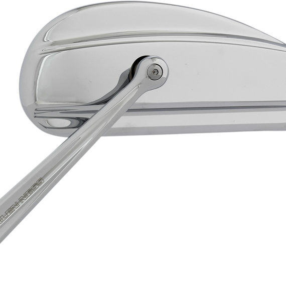 Caracteristicas: Elongated design Mirror head and stem forged from billet aluminum Heavy duty stainless steel internal pivot hardware Standard and Metric mounting hardware included Lazer engraved Arlen Ness logo