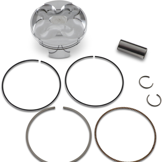 Caracteristicas: Two-stroke pistons are made from 4032 silicium Four-stroke pistons are made from 2618 silicium - the same material used to produce Formula 1 pistons Both include 3% copper in materials for better heat resistance All pistons are forged using a precision heat-treatment process that allows for production tolerances of just .005mm Forged piston tooling allows for the lightest available product Kits include antiwear coated piston, rings, pin and circlips