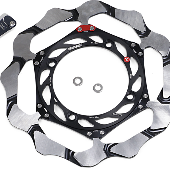 Caracteristicas: Designed with input from Braking's working experience with best teams in most important competitions in the world (MXGP and MX2) The braking track ensures a better heat dissipation, ensuring a steady friction coefficient The new connection structure allows a more controlled a radial axial play, with a better load transfer between the braking track and the carrier Thermal design optimized Maximum weight-to-performance ratio Consistent disc temperature Absence of heat spots Direct load transfer between rotor and hub No pin deformation due to applied load