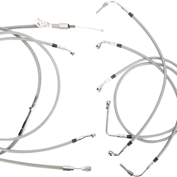 Caracteristicas: Complete installation kit for Burly Ape hangers Kits include extended brake line, extended clutch cable/clutch line, extended throttle/idle cables as required and all necessary wiring Brake lines feature PTFE inner liner and heavy-duty stainless steel outer braid Dresser kits reuse stock Throttle-By-Wire harness Kits are based on using 2" risers with ape hanger-style handlebars