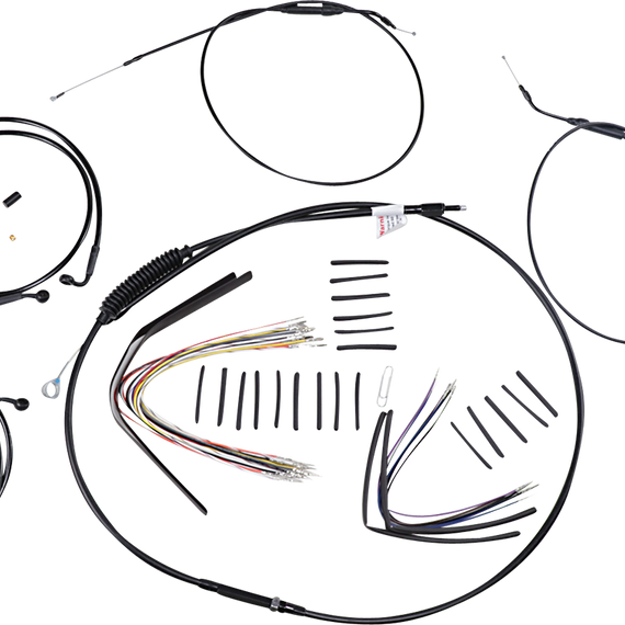 Caracteristicas: Complete installation kit for Burly Ape hangers Kits include extended brake line (unless noted), extended clutch cable/clutch line, extended throttle/idle cables as required and all necessary wiring Brake lines, when included, feature PTFE inner liner and heavy-duty stainless steel outer braid Dresser kits reuse stock Throttle-By-Wire harness Kits are based on using 2" risers with ape hanger-style handlebars