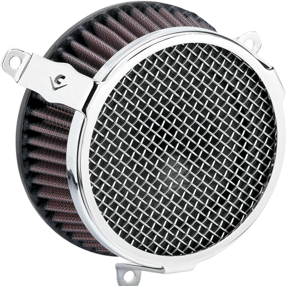 Caracteristicas: The Cobra system consists of a laser-cut, formed steel cover, separate mounting ring, and all the fasteners, seals, backing plate and mounting hardware for easy installation Flows better than stock or competing units, in large part because of its unique internal venturi design of the inner filter High-flow K&N® Air Filter element ensures the maximum air intake and protection Slim profile keeps the unit away from the rider’s leg Formed stainless steel mesh insert Optimizes overall performance Made in the U.S.A.