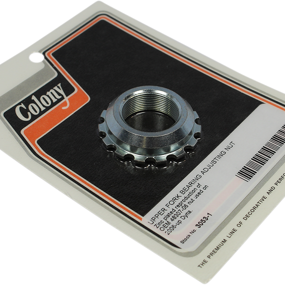 Caracteristicas: Upper fork bearing adjustment nut Zink plated reproduction
