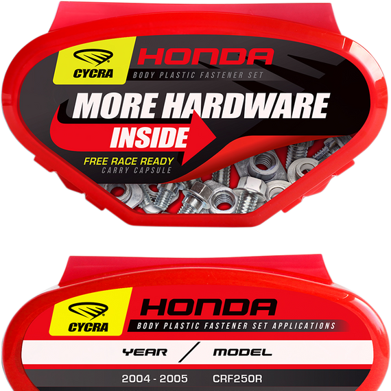 Caracteristicas: Designed to help you maintain and restore your bike 10.9 OEM grade & original factory configuration for precise fit Includes bolts for front fender, rear fender, fork guards, side panels, front number plate, seat and radiator shrouds (and air box on applicable models) Race Ready Carry Capsule included for convenience & organization Fitment spans multiple years and models, thus bonus hardware may result based on which year/model fastener kit is applied to