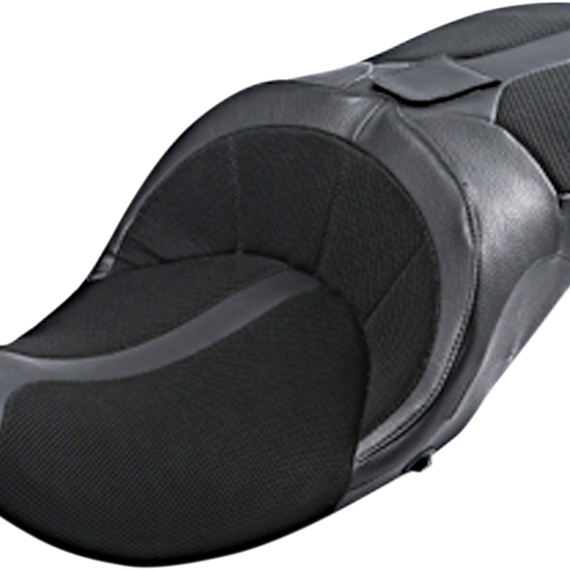 Caracteristicas: Developed for the rider who wants to sit back and lower with comfort Wider front and rear for max comfort with feel of the bike and road Lowest profile production IST for the rider and passenger Leather seating surface and automotive grade vinyl siding on Standard IST model Breathable, waterproof, spacer mesh material with automotive grade vinyl siding on optional AirHawk IST model Made in the U.S.A.