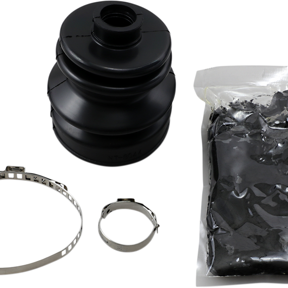 • These kits are complete with all components required to replace factory OEM worn out or damaged boots. Made of Neoprene rubber and including Molybdenum grease plus all the hardware (including stainless steel bands) that is required to complete a replacement. Made of a higher quality than the original OEM factory boots, these parts are a much less expensive repair than the replacement of complete CV Joints when dirt and moisture enter the joint if a boot is torn or worn out.