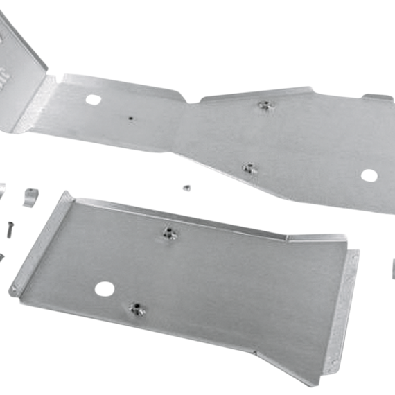 Caracteristicas: Constructed from 3/16" aluminum alloy plates Precision-formed skid plate wraps around frame tubes for maximum protection Protect frame, engine cases and undercarriage from rocks and debris Oil drain hole included All mounting hardware included for quick and easy installation