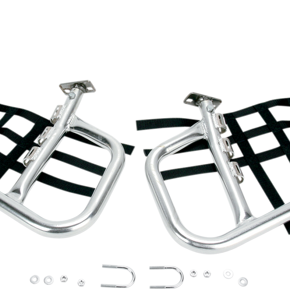 Caracteristicas: The latest in nerf bar technology combines lightweight aluminum tubing with high-strength steel brackets for the ultimate nerf bar 1-1/4" alloy tubes are heli-arc welded at the joints 4-gauge steel mounting brackets The highest tensile-strength webbing is used for maximum safety