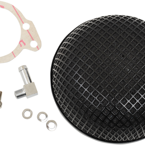 Caracteristicas: Retro-style air cleaner measures 5-1/2" in diameter Replacement filter element available separately Requires appropriate carb support bracket All necessary mounting hardware included
