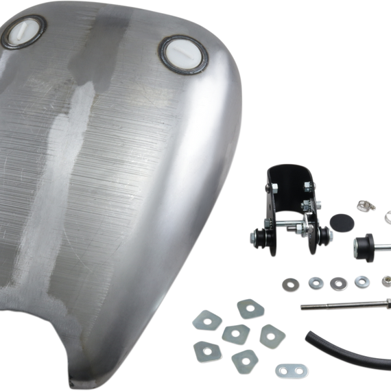 Caracteristicas: Extended design of these tanks allows the lines of the tank to flow into the lines of the seat for a great custom look 2" longer than a standard QuickBob tank Tanks have cutout in rear for seat nose (some seats may need to be shortened) 3.9-gallon capacity Utilizes a 22mm petcock Comes with necessary mounting brackets When installed on '92 and later models and the OEM continuous venting system is eliminated or disconnected, you may not reuse your stock vented cap, but may replace it with an earlier version of the screw-type caps