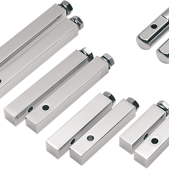 Caracteristicas: Chrome aluminum construction Accept most female footpegs Used on motor mount bars as well as passenger footpeg bars Come with 3/8"-16 x 3/4" bolts