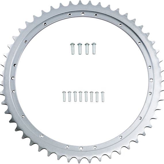 Caracteristicas: Zinc-plated 51-tooth rear sprocket Includes necessary rivets