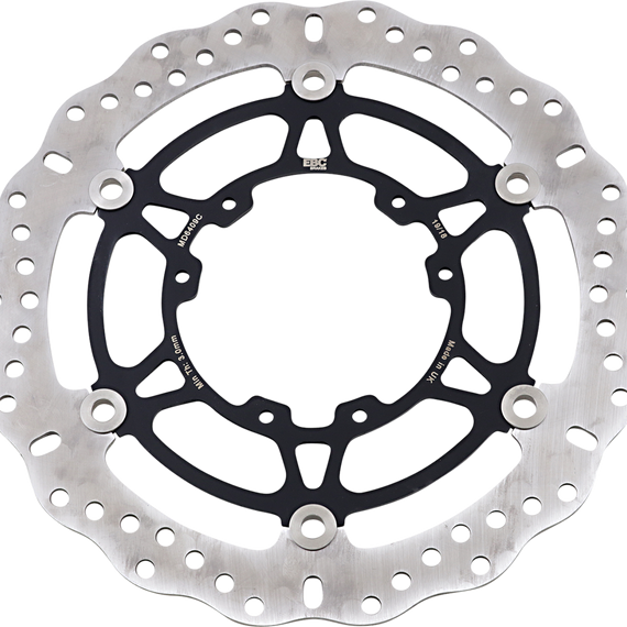 Caracteristicas: Super-trick looking contour brake rotor profile Heat-treated stainless steel Rotor design reduces unsprung weight Made from German mill-rolled heat-treated steel No vent holes in the pad sweep area to improve pad and disc wear for enduro use