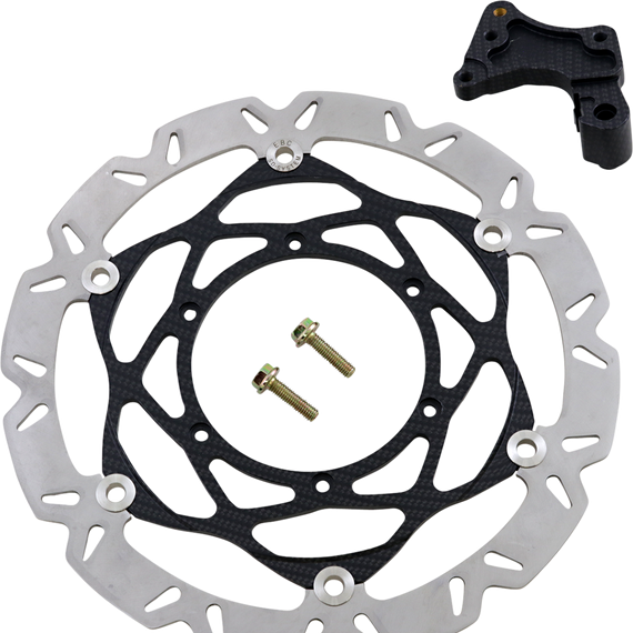 Caracteristicas: Oversize rotor kits give your SuperMoto bike the competitive edge Rotor material has higher friction than plain stainless steel for added stopping power Rotors measure 320 mm Come with caliper relocation bracket Designed to fit standard hubs