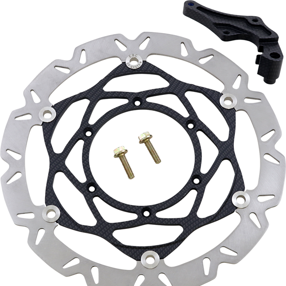 Caracteristicas: Oversize rotor kits give your SuperMoto bike the competitive edge Rotor material has higher friction than plain stainless steel for added stopping power Rotors measure 320 mm Come with caliper relocation bracket Designed to fit standard hubs
