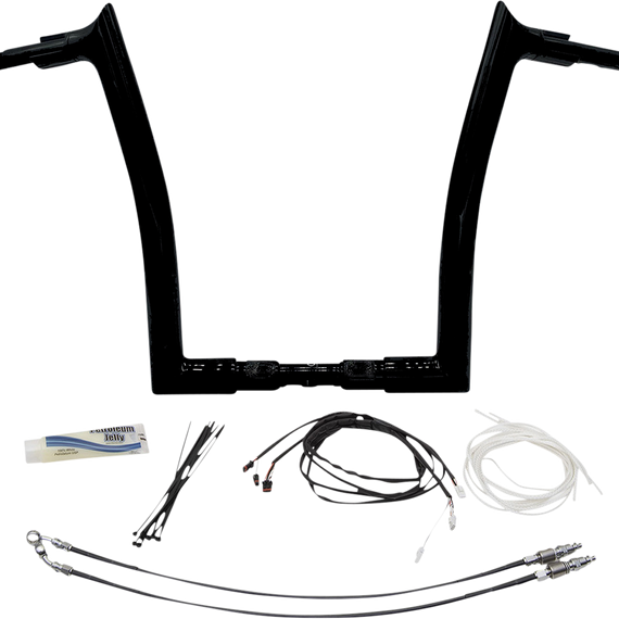 Caracteristicas: Adjustable 1-½” collar next to handlebar controls for custom look Revolutionary bolt-together  two-piece handlebar design that takes up half the shelf space, is easy to ship and even faster to install CNC mandrel-bent from 1-1/2" diameter x .095" wall heavy tube EZ install means no more need to fight internal wiring; install handlebar wiring in minutes Billet machined top with a large internal machined radius allows for EZ pulling of wiring (non-welded top corner) Install kits include everything needed to install the handlebars in half the time of other kits due to our design that only extends the existing clutch cable/ clutch line and brake lines Handlebars are knurled and notched for TBW applications Made in the U.S.A. Accepts OEM heated grips Patent No. 10,946,926