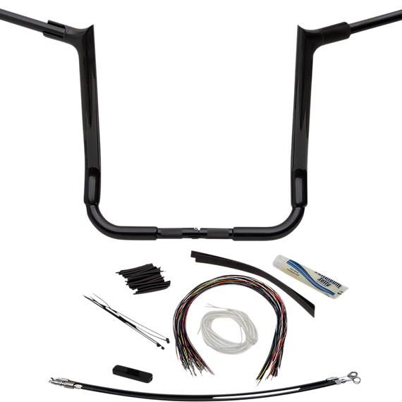 Caracteristicas: Adjustable 1-½” collar next to handlebar controls for custom look Revolutionary bolt-together  two-piece handlebar design that takes up half the shelf space, is easy to ship and even faster to install CNC mandrel-bent from 1-1/2" diameter x .095" wall heavy tube EZ install means no more need to fight internal wiring; install handlebar wiring in minutes Billet machined top with a large internal machined radius allows for EZ pulling of wiring (non-welded top corner) Install kits include everything needed to install the handlebars in half the time of other kits due to our design that only extends the existing clutch cable/ clutch line and brake lines Handlebars are knurled and notched for TBW applications Made in the U.S.A. Accepts OEM heated grips Patent No. 10,946,926