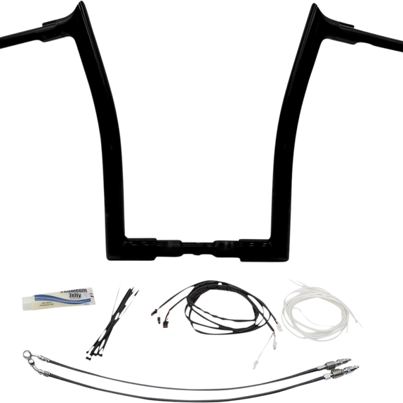 Caracteristicas: Adjustable 1-½” collar next to handlebar controls for custom look Revolutionary bolt-together  two-piece handlebar design that takes up half the shelf space, is easy to ship and even faster to install CNC mandrel-bent from 1-1/2" diameter x .095" wall heavy tube EZ install means no more need to fight internal wiring; install handlebar wiring in minutes Billet machined top with a large internal machined radius allows for EZ pulling of wiring (non-welded top corner) Install kits include everything needed to install the handlebars in half the time of other kits due to our design that only extends the existing clutch cable/ clutch line and brake lines Handlebars are knurled and notched for TBW applications Made in the U.S.A. Accepts OEM heated grips Patent No. 10,946,926