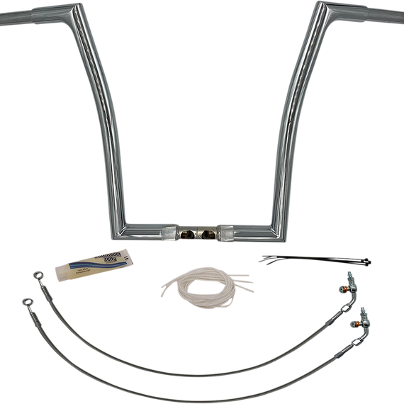 Caracteristicas: Bolt together, two-piece handlebar that takes up half the shelf space and is easy to ship CNC mandrel-bent from 1-1/4" diameter x .120" wall heavy tube EZ Install means no more need to fight internal wiring; you can install wiring in minutes Certain models and heights of handlebar kits will include a brake line extension, clutch line/cable extension and wiring harness, while some of the shorter handlebar kits will only contain a wiring harness or a clutch line/cable extension; each kit is priced accordingly Black handlebars come with black lines/cable extensions; chrome handlebars come with braided lines/cable extensions Knurled and notched for TBW applications Made in the U.S.A. Kits include only the necessary components needed to install handlebars based on the model and height of handlebar Patent No. 10,946,926