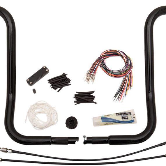 Caracteristicas: EZ Install means no more need to fight internal wiring; you can install wiring in minutes Kits include only the necessary components needed to install handlebars based on the model and height of handlebar Will include a brake line extension, clutch line/cable extension and wiring harness when needed CNC mandrel-bent from 1-1/4" diameter x .120" wall heavy tube Bolt together, two-piece handlebar that takes up half the shelf space and is easy to ship Made in the U.S.A. These handlebar kits do not replace existing lines, but they extend them Patent No. 10,946,926