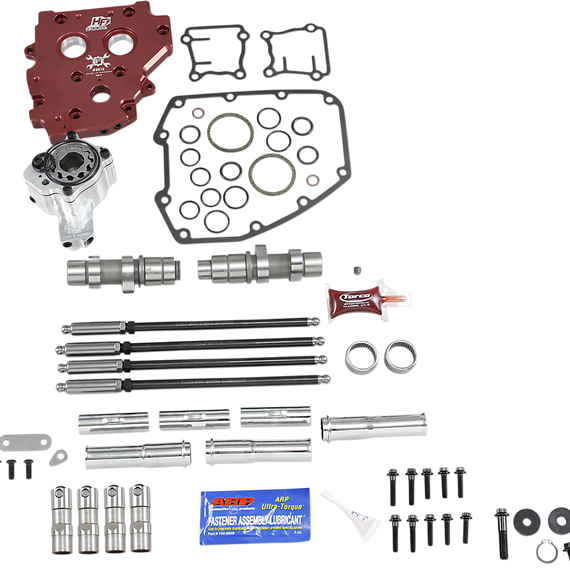 Caracteristicas: All necessary components from top-to-bottom of the camchest Provide maximum reliability, longevity, peak performance, and the coolest engine and oil temperatures obtainable Quieter and smoother engine operation Increase oil pressure, scavenge volume and engine oil flow 25-35 degree cooler engine temperatures 15-30 degree cooler oil temperatures 15-30 more PSI of oil pressure Eliminate wet sumping, blow by and oily air cleaners Heavy-duty Fast Install adjustable pushrods can be installed without removing top rocker covers Includes Feuling® HP+® high-volume oil pump, high-flow billet cam plate, REAPER® Series camshafts, HP+® hydraulic roller lifters, Fast Install® adjustable pushrods, Timken®/Koyo® bearings, gaskets, O-rings, hardware, ARP® fasteners, washers, moly lube and Loctite® Conversion chain drive kits update early mechanical-style tensioner systems to the new late-style hydraulic tensioner chain drive system; these kits utilize conversion Reaper® camshafts which have 99-06 inner-cam journals matched with 07-17 outer-cam journals, allowing the use of the 07-17 cam plate and hydraulic chain drive tensioner system; hydraulic chain drive components purchased separately Installation of gear drive cams will require separate purchase of S&S or Andrews 4-gear drive kit