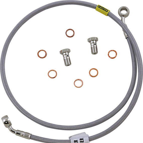 Caracteristicas: Stainless Steel lines are typically the first upgrade you should make Stock rubber lines will break down and expand, causing a spongy feel or worse. Steel lines eliminate expansion which results in consistent feel and performance Made with only DuPont virgin grade PTFE (Polytetrafluoroethylene) inner core 64 strand braid Includes all mounting components, extra washers, and line end labeling, and bike specific installations R&D and manufacturing done in the US