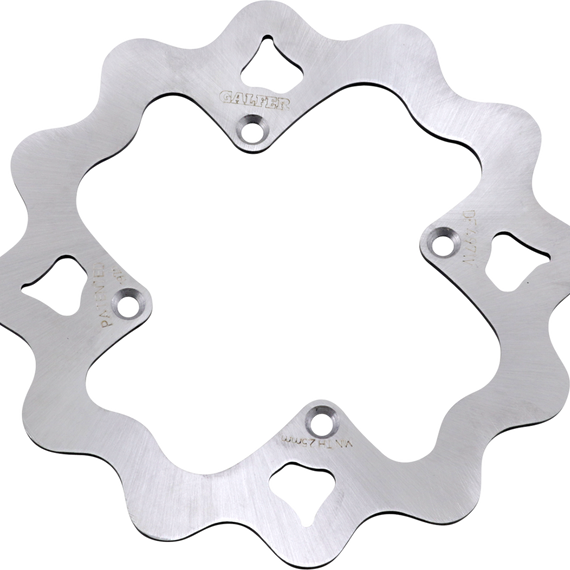 Caracteristicas: The rotor preferred by many top AMA Supercross teams Made of Galfer's unique laser-cut high carbon 420 stainless steel/8 composite Laser cut and double-disc parallel ground to assure perfect flatness and excellent feel Rotors cool as they rotate to lower brake operating temperatures Standard size rotors are direct replacement front and rear brake rotors; do not require any extra parts for install Oversized (270 mm) rotors available for select models (rotor only, do not include brake caliper relocation bracket) Manufactured in Spain