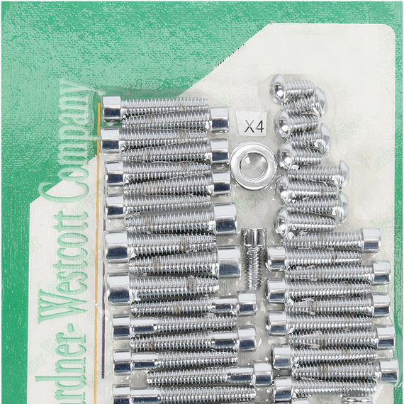 Caracteristicas: Kits feature polished stainless steel or polished chrome steel socket-head bolts Motor sets for Twin Cam include cam cover, primary cover, transmission side cover, oil hose cover, lifter base, rocker box, front inner primary, washer, motor and transmission mount bolts Motor set for M-Eight includes cam cover, primary cover, transmission covers, electric module cover, lifter base, rock boxes, top front motor mount and rear motor mount Side cover set include cam, primary, oil hose cover and transmission side cover Primary set include primary, inspection and derby cover Made in the U.S.A.