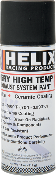 Caracteristicas: A great way to extend the life and color of exhaust system components Formulated for components that require high-temperature paint applications, including fiberglass exhaust wraps and pipes Exclusive ceramic formula increases heat dispersion to maintain and protect paint finish Withstands intermittent temperatures up to 2,000°F (1,093°C) Oil and gas resistant Also works on radiators, oil coolers, manifolds, engine cases, and more E-Z Touch spray nozzle delivers a professional spray pattern Available in 11-ounce net wt. aerosol cans Made in the U.S.A.