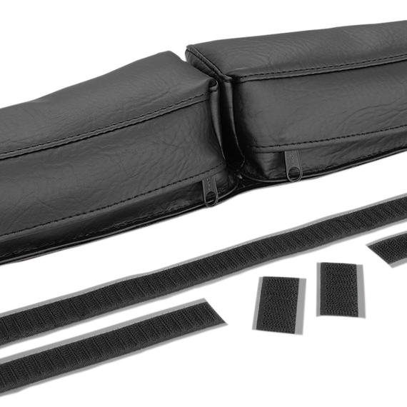 Caracteristicas: Each pouch is 8 ½’’ x 2 ½’’ x 3’’ deep, with a combined length of 17’’ Mounts securely with hook and loop to the top of the fairing dash and will not work loose even in the harshest driving conditions Its tapered design allows air flow from the windshield vent opening, keeping proper air movement over the dash The zippered openings are protected by a full-length flap covering the opening to keep the weather from getting inside Made in the USA.