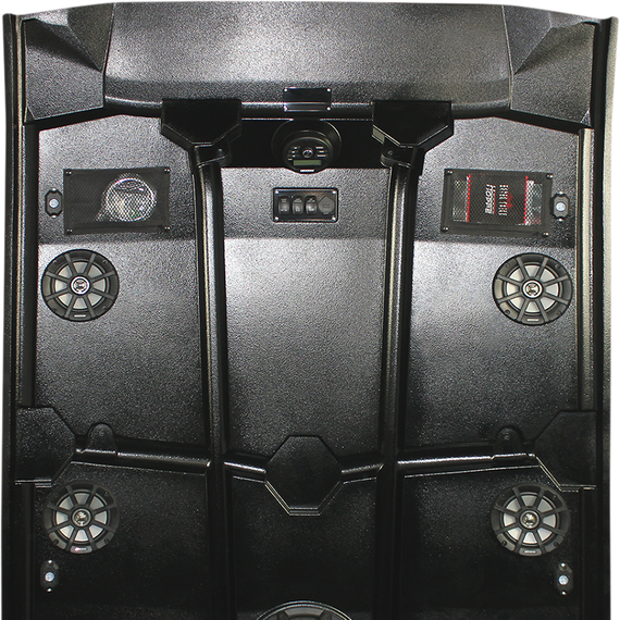 Caracteristicas: Front 31” 150W sleek, high-output single-row LED light bar Rear 11” 50W sleek, high-output single-row LED light bar Backlit switches for light bars and interior lights - easily control your lights at night RBG LED Interior light kit includes four lights Phone app-controlled (iPhone® and Android® compatible) Lights dance to the beat of your music Kicker® KMC2 multimedia gauge-style marine receiver with Bluetooth Bluetooth audio streaming AM/FM digital tuner USB input and USB charging RCA aux input headphone jack Kicker® 6.5” PS-Series speakers Titanium tweeters Neodymium magnets for high power with low weight Lightweight, weather-resistant polymer baskets Waterproof suspension system Kicker® COMPRT 10” 400W, 1 ohm subwoofer Dual voice coil Extra-large surround roll for deeper, smoother bass Kicker® PX series amplifiers 300W – 4 x 75W full-range amplifier comes standard on all models 500W – mono subwoofer amplifier on configurations with subwoofer Weather-resistant, IP66 rated Active crossover Hand-laid reinforcement layered with directional fiber orientation for ultimate rigidity and strength Rigid design improves sound quality for the cleanest bass and crispest highs Strengthened edges to protect from tree branch strikes Cage clamp fasteners hidden on the top side for a smooth yet aggressive design Includes two zipper pockets Hoppe Liner Coating for durable, all-weather protection