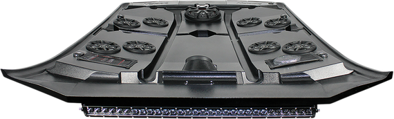 Caracteristicas: Front 31” 150W sleek, high-output single-row LED light bar Rear 11” 50W sleek, high-output single-row LED light bar Backlit switches for light bars and interior lights - easily control your lights at night RBG LED Interior light kit includes four lights Phone app-controlled (iPhone® and Android® compatible) Lights dance to the beat of your music Kicker® KMC2 multimedia gauge-style marine receiver with Bluetooth Bluetooth audio streaming AM/FM digital tuner USB input and USB charging RCA aux input headphone jack Kicker® 6.5” PS-Series speakers Titanium tweeters Neodymium magnets for high power with low weight Lightweight, weather-resistant polymer baskets Waterproof suspension system Kicker® COMPRT 10” 400W, 1 ohm subwoofer Dual voice coil Extra-large surround roll for deeper, smoother bass Kicker® PX series amplifiers 300W – 4 x 75W full-range amplifier comes standard on all models 500W – mono subwoofer amplifier on configurations with subwoofer Weather-resistant, IP66 rated Active crossover Hand-laid reinforcement layered with directional fiber orientation for ultimate rigidity and strength Rigid design improves sound quality for the cleanest bass and crispest highs Strengthened edges to protect from tree branch strikes Cage clamp fasteners hidden on the top side for a smooth yet aggressive design Includes two zipper pockets Hoppe Liner Coating for durable, all-weather protection