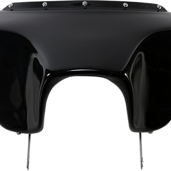 Caracteristicas: Gloss black inner and outer fairings ready for your painter Jensen JRV9000 head unit Built-in navigation 6.2" high definition TFT LCD screen Bluetooth®/USB/HDMI/audio-video input CD/MP3/WMA AM-FM DVD IPod®/IPhone® SiriusXM® ready Camera compatible for up to three cameras PA mic input Mounting brackets, bushings and hardware Coaxial marine speakers for great sound at any speed with any pipes Includes 12" clear windshield Concealed internal antenna for a clean, uncluttered appearance Weather door and internal shielding to protect the radio from water Superb wind protection and great audio with a classic appearance Hand-laid fiberglass construction These fairings integrate with your OEM windshield mounts and use a quick-detach power cord to go on or off your bike in less than five minutes Made in the U.S.A.