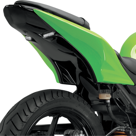 Caracteristicas: High-quality ABS plastic undertail delivers a sleek, stealthy appearance Superbike-style undertail hides the stock taillight; running light and brake light are highly visible through the undertail when lit Includes built-in LED and license plate light