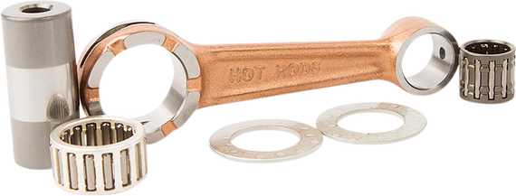 Caracteristicas: Heavy-duty OE replacement connecting rods Certified 8620 AISI steel provides superior strength Crankpins are manufactured from hot-rolled ASTM 4115 and case hardened to 58-62Rc Feature the latest in caged needle roller bearing designs for high rpm longevity Uniquely designed big end uses strategically located side scalloping and vent slots to minimize bearing race distortion at high rpm Small ends are double drilled to supply extra lubrication and cooling to the wrist pin bearing, which is especially important when the piston crown is close to the wrist pin bearing Shot-peened to eliminate surface stress risers and to smoothly blend together the rod forging's radiuses Double honing produces an ultra-round bearing surface for reliability at high rpm Most rod assemblies are sold complete with rod, crank pin, crank pin bearing, top-end bearing and silver-coated bronze phosphor thrust washers Compatible with Hot Rods and OE crankshafts Made in U.S.A.; connecting rod manufactured at Hot Rods Iowa facility