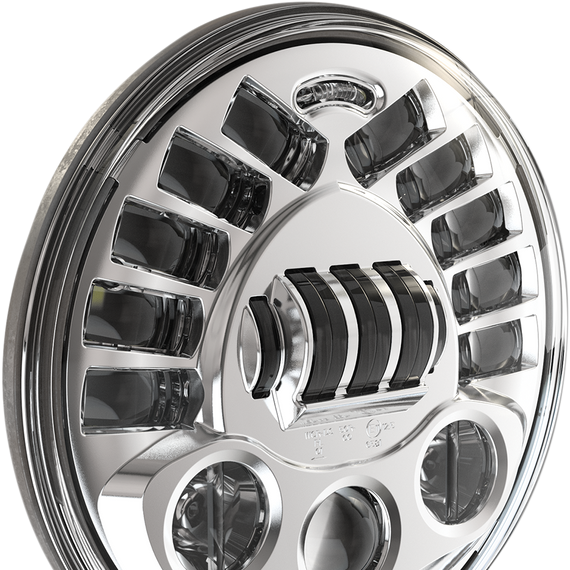 Caracteristicas: The improved Adaptive 2 series headlights allow for the adaptive technology when using high beam, as well as low beam Senses leaning angles up to 30° and dynamically fills in dark areas while turning Direct replacement for most 7” headlights; retrofits PAR56 headlights Superior visibility, safety and durability Easy plug-n-play H4-style connector Die-cast aluminum housing 1600 lumen output (high beam), 1020 lumen output (low beam) DOT compliant Made in the U.S.A.