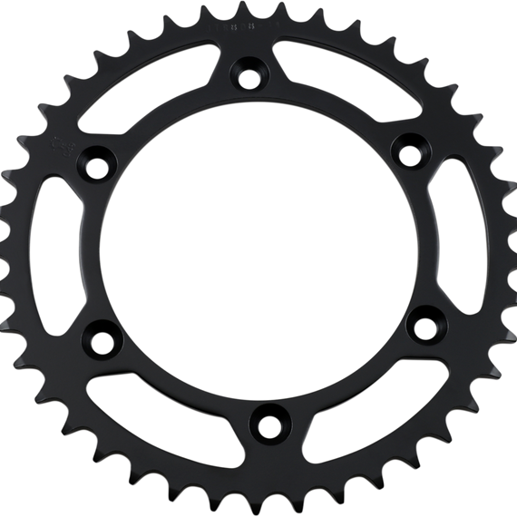 Caracteristicas: Computer designed to achieve ultimate strength at minimum weight JT combines leading-edge technology with top materials to produce the ultimate quality sprocket range with unbeatable value Every sprocket meets or exceeds the highest possible quality standards Sprockets are heat-treated and beadblasted to reduce material surface tension Front sprockets are made with top-quality Japanese C45 high carbon steel and SCM415 chromoly steel alloy Steel rear sprockets are made with top-quality Japanese C45 high carbon steel Aluminum rear sprockets are made with high strength Austrian 7075 T-6 anodized aluminum JT aluminum sprockets are about 30% lighter than a comparable steel equivalent, which reduces un-sprung rotating weight and improves performance
