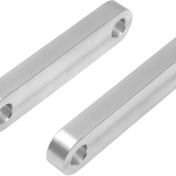 Caracteristicas: Provide perfect spacing for a Tire Hugger Series fender project Use with Klock Werks front fenders, or they can also be used for a variety of custom applications Spacers are 5/8 in. tall x 3 in. long and have 2 3/4 in. on-center holes; spacers are 1/2 in. wide Machined from billet aluminum Made in the U.S.A.