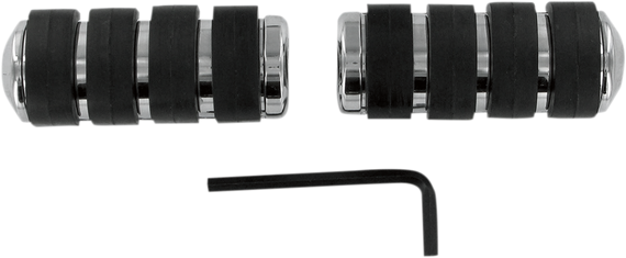 Caracteristicas: Give you a custom look and dampen vibration Interchangeable ends allow use on early or late-style footpeg mounts Hollow-core neoprene inserts are long lasting The Trident design offers a new look to the original ISO™ pegs Pegs without male-mount ends require the use of Kuryakyn footpeg adapters ISO®-Pegs components are not compatible with other footpegs such as the Soft-Ride style.