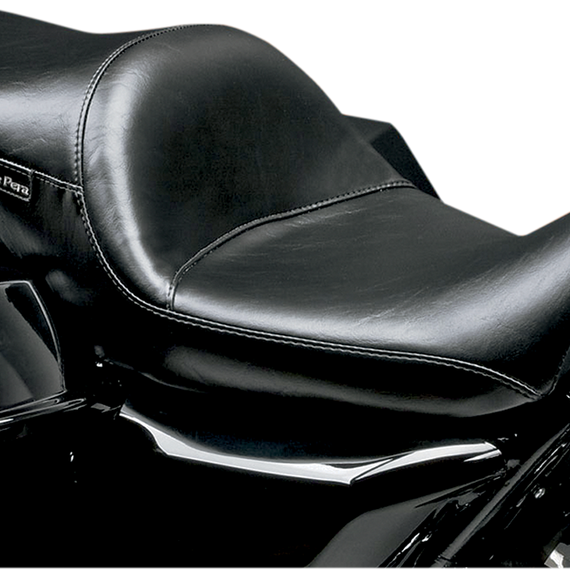 Caracteristicas: Comfortable seat that retains a custom look Designed for the taller rider who needs more room to move back while still giving the passenger comfort Gives the driver an extra 2" of leg room Special contours give good support while allowing unrestricted movement Molded one-piece foam foundation covered with premium-grade black vinyl on a 16-gauge powder-coated steel base plate Seat bottom carpeted to protect the fender Made in the U.S.A.