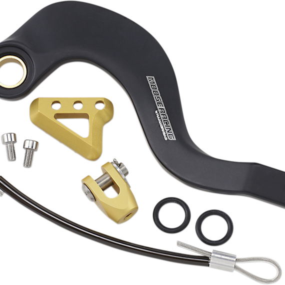 Caracteristicas: Moose Racing has teamed up with Hammerhead to bring you the ultimate brake pedal The brake pedal arms are forged from 6061 with stainless steel clevis pin sleeves and brass mounting bolt sleeve bushings Brake tip is finely machined CNC part with stainless steel set screws for durability and grip Brake tips can be adjusted for length in two mounting positions and are connected with stainless steel socket screws The brake pedal arm is anodized in a matte black finish and the tips are anodized in colors per bike brand Brake pedals include a CNC brake clevis, also anodized in colors per bike brand with a stainless steel pin (except KTM) Every brake pedal also comes with a stainless steel brake snake Anodized with UV protection to preserve color Made in the U.S.A.