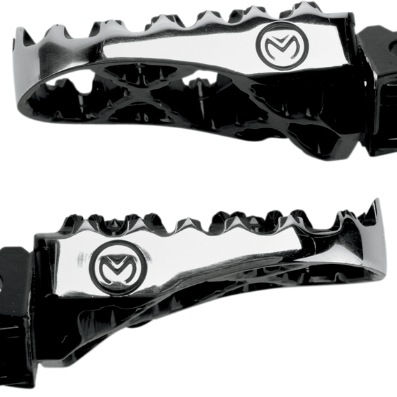 Caracteristicas: Each footpeg is cast, heat treated, and hardened from 17-4 stainless steel, given a solution annealing treatment, and age hardened for superior strength Width (57mm) and length (90mm); slightly convex platform for better boot positioning and grip when leaning forward or back Dual plane teeth provide traction without the "stuck" feeling Available with 1/2" rear offset to allow more space Made in the U.S.A.