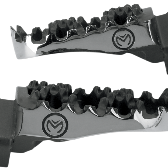 Caracteristicas: Each footpeg is cast, heat treated, and hardened from 17-4 stainless steel, given a solution annealing treatment, and age hardened for superior strength Width (57mm) and length (90mm); slightly convex platform for better boot positioning and grip when leaning forward or back Dual plane teeth provide traction without the "stuck" feeling Available with 1/2" rear offset to allow more space Made in the U.S.A.