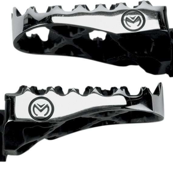 Caracteristicas: Each footpeg is cast, heat treated, and hardened from 17-4 stainless steel, given a solution annealing treatment, and age hardened for superior strength Width (57mm) and length (90mm); slightly convex platform for better boot positioning and grip when leaning forward or back Dual plane teeth provide traction without the "stuck" feeling Available with 1/2" rear offset to allow more space Made in the U.S.A.