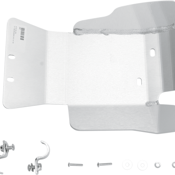 Caracteristicas: Protect vital engine parts and cases from rocks and debris Clear anodized for corrosion protection and good looks Skid plates made from 3/16" 5052 H-32 aluminum Smooth underside won't snag when crossing logs Oil drain hole on all required models Heat-treated chromoly steel clamps keep plates mounted securely All mounting hardware included Made in the U.S.A.